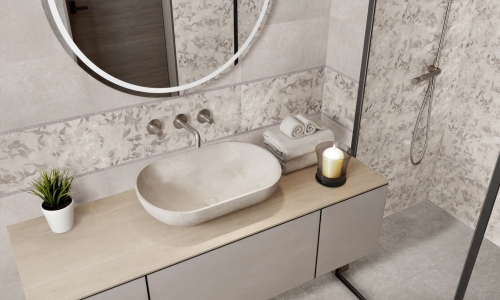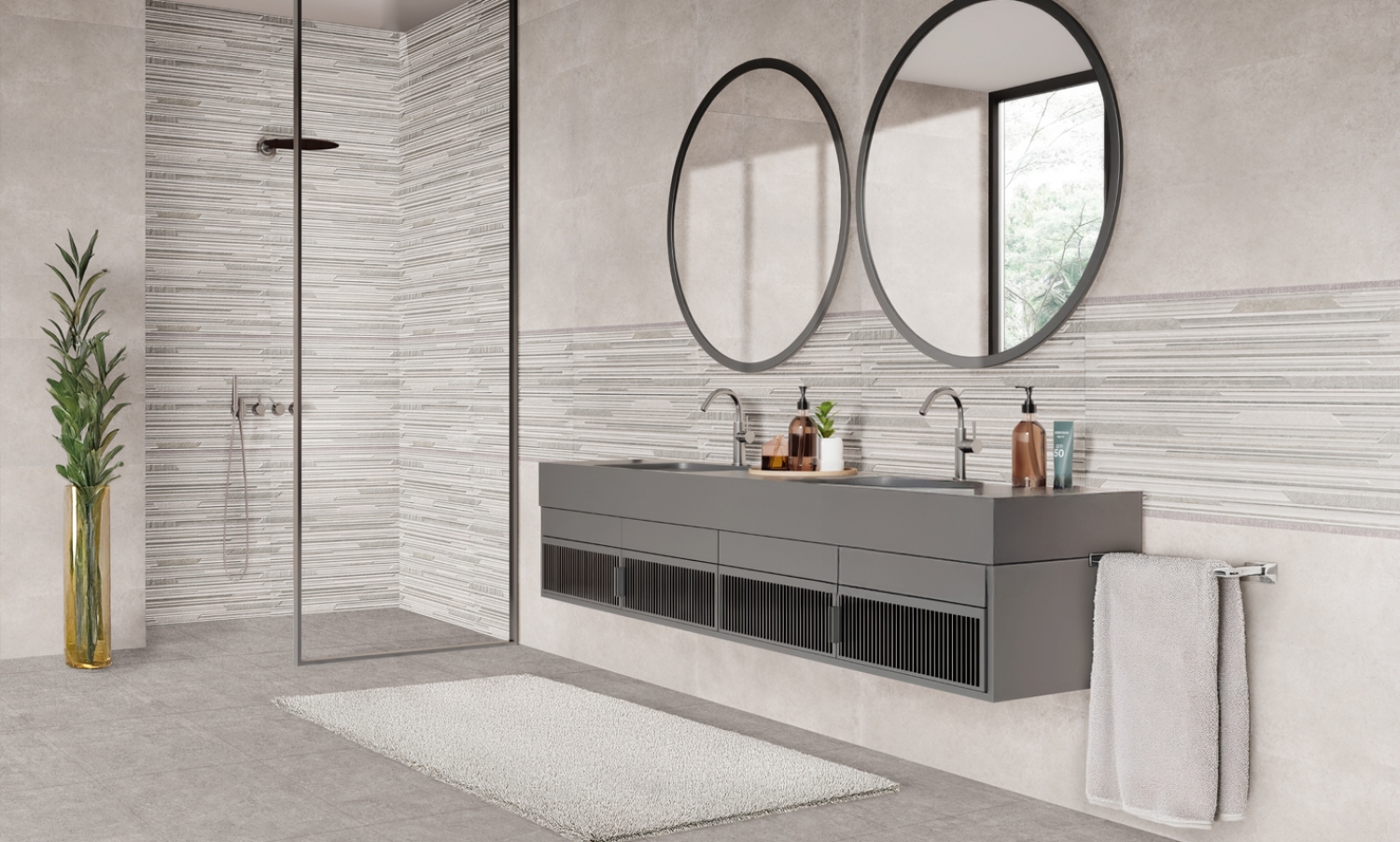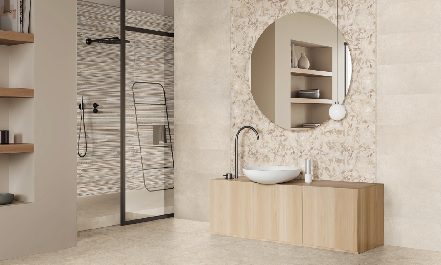 Una collezione nata per vestire lo spazio con discrezione. Dal foliage leggero e brillante che evoca una natura sussurrata, al muretto minimalista. Soluzioni leggere, pensate per un bagno contemporaneo dove la forza decorativa si esprime con leggerezza, valorizzando la parete senza mai dominarla.